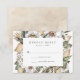 Cartões RSVP de casamento florais elegantes e exclusivos com data RSVP e personalização aceita/declina o texto enquadrado por flores brancas de aquarela e folhagem exuberante em tons ricos de verde, bege e terra marrom. O cartão de resposta do casamento floral reverte para um fundo de aquarela bege claro. Projetado para coordenar com nossa coleção de casamento Boho White Floral & Greenery.