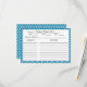 Cartões de resposta personalizados de cartão de receita de estilo de vintage para um chá de panela. Bolinhas brancas em azul ceruliano. Volte no tempo e hospede um chá de panela que é uma deliciosa explosão do passado com nossa coleção de Chás de panela inspirada na Kitchen. Aceite o charme de ontem quando celebrar a futura noiva com um toque de nostalgia. De convites que transportam seus convidados para uma era passada para decorar que transforma seu espaço em um refúgio retrô, cada detalhe exude elegância e riso antigos. Partilha na alegria de uma noiva retrô amorosa com sinais personalizados, favores e atividades que conjugam o espírito do passado e o entusiasmo do futuro. Esta coleção é uma mistura animadora de estética vintage e celebração moderna, garantindo um chá de panela inesquecível cheio de memórias e risos queridos que ecoam ao longo dos tempos.