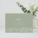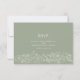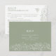 Casamento com RSVP e opções de refeição de flur de lis botânica. Linda arte de linhagem, primavera florescimento, tendrils e borboletas. Um simples cartão verde e branco de sábio que pode ser personalizado com suas próprias iniciais de monograma e detalhes de opções de refeição. Excelente de manter os custos baixos ao planejar um evento de jantar em repouso. Os convites correspondentes e outros itens e opções de cores correspondentes estão disponíveis e podem ser criados mediante solicitação. © Original desenho e design por Sarah Trett para www.mylittleedenweddings.com no Zazzle.
