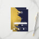 Cartão RSVP Brushstrokes Douradas falsas e Marinho azul com mo