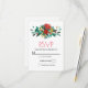 Uma placa RSVP com um bonito buquê floral em cores vermelha, dourada e verde.
