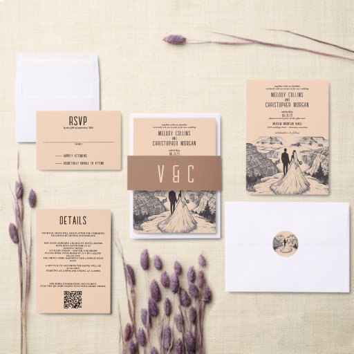 Cartão RSVP Casal Grand Canyon - Opções de Comida e Solicitaçã