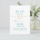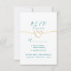 Cartão de RSVP de casamento azul-turquesa moderno, minimalista e elegante com coração de corda dourada e caligrafia simples manuscrita.
