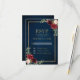 Cartão RSVP Casamento Azul de Marinho de Quadro Floral Dourado