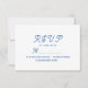 Cartão RSVP de casamento branco e azul moderno, elegante e minimalista com corda de ouro no fundo e simples roteiro de caligrafia.
