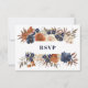 Um cartão de RSVP de casamento floral pintado a mão elegante. Edite facilmente o modelo para seus próprios detalhes de evento. Corantes elegantes de bege, castanho, ferrugem, creme, névoa e azul. Placa RSVP de Casamento Azul Terracotta. Este produto faz parte da nossa coleção Boho Beige Blush Blue Watercolor Floral Wedding.