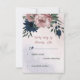Cartão RSVP casamento botânico com flores rosa e marinhos