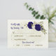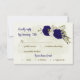 Belo cartão de resposta romântico de casamento com flores azuis reais e beige e algumas folhas. PARA MAIS PRODUTOS CORRESPONDENTES, clique na coleção acima ou entre em contato comigo