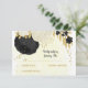 Flores negras e brancas românticas com ouro folhas de ouro cartão de resposta do casamento botânico. Os detalhes de brilho são simulados.