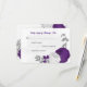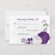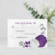 Romântica, roxo real e flores brancas com folhas de prata, cartão de resposta do casamento botânico. Os detalhes de brilho são simulados.