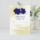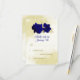 Belo cartão de resposta do casamento com flores azuis reais e folhas de ouro Os detalhes da brilha do ouro são simulados. PARA MAIS PRODUTOS CORRESPONDENTES, consulte a coleção acima ou entre em contato comigo
