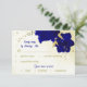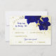 Belo cartão de resposta de casamento com opção de refeição com flores azuis reais e folhas de ouro Os detalhes da reluz dourada são simulados. PARA MAIS PRODUTOS CORRESPONDENTES, consulte a coleção acima ou entre em contato comigo