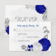 Cartão RSVP casamento botânico real com flores azuis e brancas