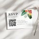 Um elegante cartão rsvp de casamento no tema do verão tropical que consiste no Código QR e no site de casamento que você pode personalizar.