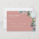 Projetado para coordenar com nossa coleção "Casamento Romântico Eucalipto e Flores Brancas", este elegante cartão RSVP de casamento floral apresenta um buquê elegante e arejado de folhas de eucalipto e verde, acentuado com delicadas flores brancas sobre um fundo rosa contemporâneo