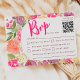 O Rsvp em estilo com o nosso brilhante cartão de resposta de casamentos de chic, guiado pelo arco floral boêmico, com bonito mão pintada por flores brilhantes e ousadas e selvagens misturam um sentimento de vintagem, com corais, flores roxas, rosas rosa e verde com uma celebração de festa de casamento com o tema botânico. Com uma tipografia moderna e néon rosa. Adicione seu código qr para direcionar seus convidados para mais informações e detalhes, adicione suas opções de comida, solicitação de música...