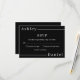 Este elegante cartão RSVP preto-e-branco é perfeito para um casamento moderno. o simples design apresenta uma caligrafia branca elegante sobre um fundo preto.