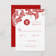 Cartão RSVP Casamento Chinês Elegante Red Floral Boho Peacock