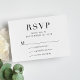 Cartão clássico de cercado RSVP de casamento preto-e-branco, com "RSVP" em tipografia elegante de serifa.