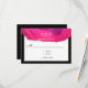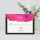 Um cartão RSVP de casamento com um esquema de cor rosa, preto e branco. O design inclui um elemento abstrato cor-de-rosa e uma mistura de texto preto e branco. Este item faz parte de uma coleção de casamento que inclui um convite para casamento, um cartão RSVP, um cartão de site de casamento e muito mais. Personalize esses itens, adicione-os ao seu carrinho e tenha um casamento maravilhoso.