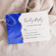 A borda esquerda deste elegante cartão de cercado RSVP de casamento moderno apresenta uma borda real azul de aquarela agata, aparada com falso brilho dourado. O título "Resposta Rápida" aparece em script de escrita manual, com texto personalizável abaixo na fonte da placa comercial da cinza de carvão em um fundo branco. O lado inverso apresenta um design real azul e dourado.