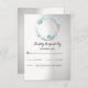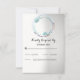 Um convite moderno e simples com uma imagem em uma grinalda de flores turquesa. O fundo é gradiente branco e cinza