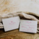Rótulo branco desenhado à mão, cartão rsvp de casamento com restrição dietética/nota alérgica. Tipografia Cerise Pink com sotaque de rabisco e padrão de faixa de rosa claro de coordenação.
