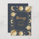 Cartão RSVP Casamento da Lua do Crescente Dourado Celestial