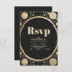 Cartão RSVP Casamento da Lua do Crescente Negro Dourado Celest