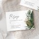Combine seus convites com esta elegante placa RSVP com um tema tropical! Uma monstera verde-escura e folhas de palma com sotaques de ouro falsos criam uma aparência coesa, deixando seus convidados saberem que são convidados para o paraíso. Esta design é perfeita para casamentos de destino ou comemorações com uma vibração da ilha.