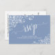 Cartão RSVP Casamento de Caligrafia Azul-Elegante Azul-Branco