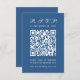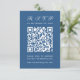 Um simples RSVP de casamento azul clássico com um grande código QR no centro e o título escrito em caligrafia. Todo texto é branco. É vertical, orientado para retratos.