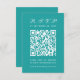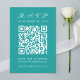 Um simples RSVP de Casamentos de Teal com um grande código QR no centro e o título escrito em caligrafia. Todo texto é branco. É vertical, orientado para retratos.
