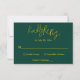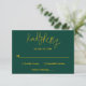 Este elegante cartão RSVP verde e dourado é perfeito para um casamento moderno. o simples design apresenta uma elegante caligrafia dourada sobre um fundo verde.