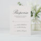 Cartão RSVP de casamento elegante com o cabeçalho "Resposta" no script sobre um fundo de cinza neutro. A cor de fundo pode ser alterada para qualquer cor que você desejar. Estes cartões RSVP de casamento permitem aos seus convidados indicar o número de participantes.