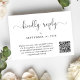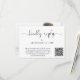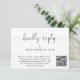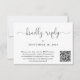 Cartão RSVP de casamento elegante que apresenta "gentilmente resposta" em um roteiro de caligrafia. Introduza o endereço do Web site do casamento para criar um código QR que os seus convidados podem analisar para RSVP online. O verso mostra sua foto sobreposta com seus primeiros nomes e a data do casamento juntos de cor.