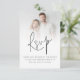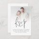 Placa RSVP de Casamento de Código QR de Script de Sobreposição de Foto Moderna. Convide seus convidados para responder on-line. Adicione o seu código QR que irá para a página de resposta do seu site de casamento. Basta alterar o URL de amostra e seu Código QR será gerado automaticamente. Uma tipografia informal em preto para o título principal RSVP e o resto do texto que pode facilmente personalizar. Substitua a foto de exemplo por sua orientação de paisagem favorita.