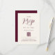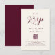 Este moderno e elegante roteiro Burgundy e Creme ivory RSVP Enclosure Card com código QR do site é a adição perfeita ao seu convite de casamento, projetado para complementar sem problemas o charme na moda da sua celebração. Com um modelo fácil de usar, você pode personalizar facilmente os detalhes de RSVP para seu dia especial, inclusive direcionando seus convidados para o seu site de casamento através de um código de QR fácil de usar. Desenvolvido pela artista Catherine Sweetman, este cartão de cerimônia captura a essência de sua celebração, convidando seus entes queridos a se juntar a vocês em uma celebração quente e inesquecível do amor.