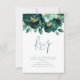 Verde esmeralda e florais dourados Script Código QR Casamento RSVP fazer conveniente para seus hóspedes responderem digitalizando seu código QR levando à página de resposta do site de casamento. O RSVP está em um script na moda e personaliza facilmente o resto das palavras para você e substitui o código QR de amostra no verso pelo seu simplesmente mudando o URL de amostra para o do seu próprio site.