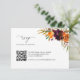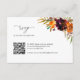 Cartão RSVP de Boho floral Russo com cor d'água pintada com tons quentes e sujos de laranja queimada, terracota e burgundy profunda junto com um pouco de verde. Abaixo está seu código QR e instruções. Esta elegante placa RSVP com os tons ricos do outono é excelente para um casamento outono.