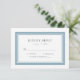 Este cartão RSVP de casamento clássico moderno apresenta uma cor de borda editável; para mudar a cor da borda e do fundo de azul empoeirado para a cor de sua escolha, clique no botão personalizar e mude simplesmente a cor de fundo frontal e traseira. Veja outros itens de casamento correspondentes aqui https://www.zazzle.com/collections/editable_color_classic_round_monogram_wedding_1-119000260232212352?rf=238364477188679314&tc=rc. Personalize-o substituindo o texto do marcador de posição. Para obter mais opções, como alterar a fonte, seu tamanho e espaçamento entre letras, clique no botão "Personalizar". *Observe que a Marca d'água do Zazzle que aparece na visualização de zoom NÃO aparecerá no produto impresso final. © Rosewood e Citrus