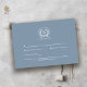 Este é um cartão de resposta de rsvp de casamento elegante, formal e clássico em azul empoeirado.