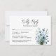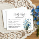 Torne fácil para seus convidados RSVP com esta simples e bonita carta. O rustic boho chic design apresenta um título elegante de script lendo "Resposta gentil" com um formulário personalizável para seus convidados preencherem e retornarem. Há um buquê de flores silvestres do campo em tons de azul empoeirado e marisco, com um sábio verde de volta.