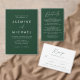 Cartões RSVP de casamento simples e elegantes, com um roteiro verde e manuscrito misturado com cartazes modernos, em um fundo branco. Personalize as placas de RSVP de casamento minimalistas com a data de resposta desejada, o personalizado aceita/declina o texto e as opções de refeição. As cartas de RSVP de Casamentos Verdes são a escolha perfeita para casamentos modernos.