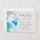 A borda esquerda deste elegante cartão RSVP de casamento moderno apresenta um buquê floral em tons de turquesa, aparado com folha de falso prateado e folhagem falsa e borrifada com brilho de prata. O texto personalizável, incluindo opções de refeição, combina o script de escrita manual de cinzas de carvão e a fonte de impressão em um fundo de cinza pálido. O verso apresenta um design floral correspondente.