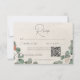 Este cartão de resposta do casamento com um design de código QR apresenta um simples, verde-aquarela suave e spray de eucalipto ferrugem num fundo de natas em apuros vintage. É delicado, elegante e subestimado. Criado pela imprensa simplesmente de farmácia.