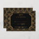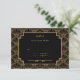 Cartão RSVP de casamento do padrão de flores de deco de arte preta e dourada. Estilo Gatsby do Excelente 1920.