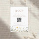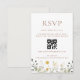 Um design caprichoso inspirado em prados encontra a conveniência. Este cartão apresenta flores silvestres delicadas e elegantes e um código QR proeminente para rastreamento rápido de convidados online. Perfeito para casamentos em jardins ou cottagecore.