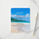 Cartão RSVP de Casamento com uma fotografia de um local de férias maravilhoso. Céu azul brilhante, praia arenosa macia com águas azuis e cristalinas tropicais. Uma árvore esmagadora cobriu a montanha ao fundo. Fotografia cênica e tranquila.