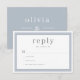 Cartão RSVP de Convite para Casamento Azul Dusty Simples Blush Elegante Moderno